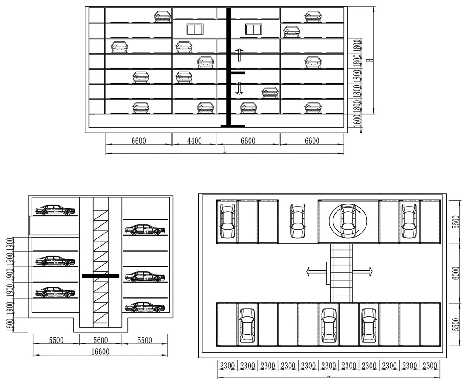 倉儲式巷道堆垛類停車設備技術含量和智能化程度較高??筛鶕?jù)場地的不同設置在室外 (一般采用全封閉型式)、室內、地上或地下。存車容積率高,安全可靠。同時,該設 備也要求存車空間相對獨立,無其它設備的干擾。一部巷道堆垛機和搬運器所負責的車輛在50~100輛之間較為合適。根據(jù)不同車庫的具體使用面積,通常選擇五層左右較為合適。
